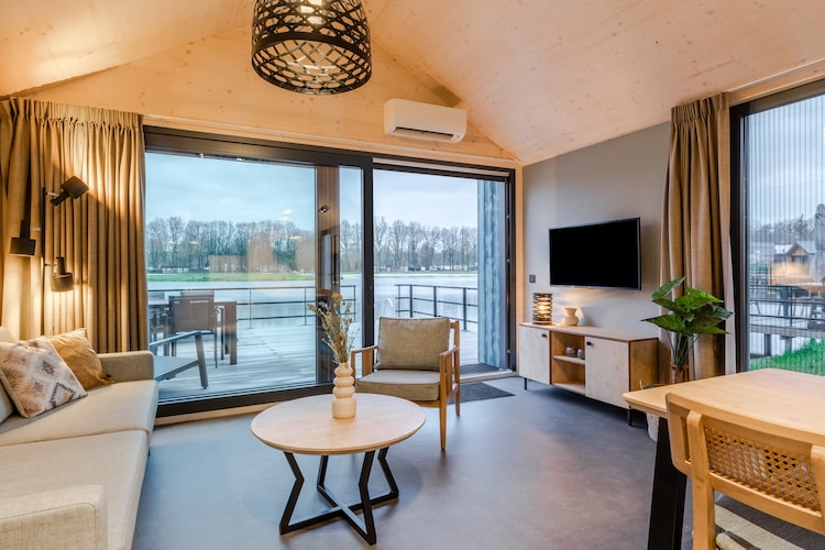 Deze vrijstaande lodge aan het water beschikt over airconditioning met verwarmingsfunctie en is geschikt voor maximaal 4 personen. De woonkamer is ingericht met een gezellige zithoek met een tv met streamingsfuncties. De keuken is ingericht met een koelkast met vriesvak, koffiecupapparaat, combimagnetron, vaatwasser en een waterkoker. De lodge heeft 2 slaapkamers. Er is een slaapkamer met 1 tweepersoonsbed, en een slaapkamer met 2 eenpersoonsbedden. Voor elk bed is er een eenpersoonsdekbed en...